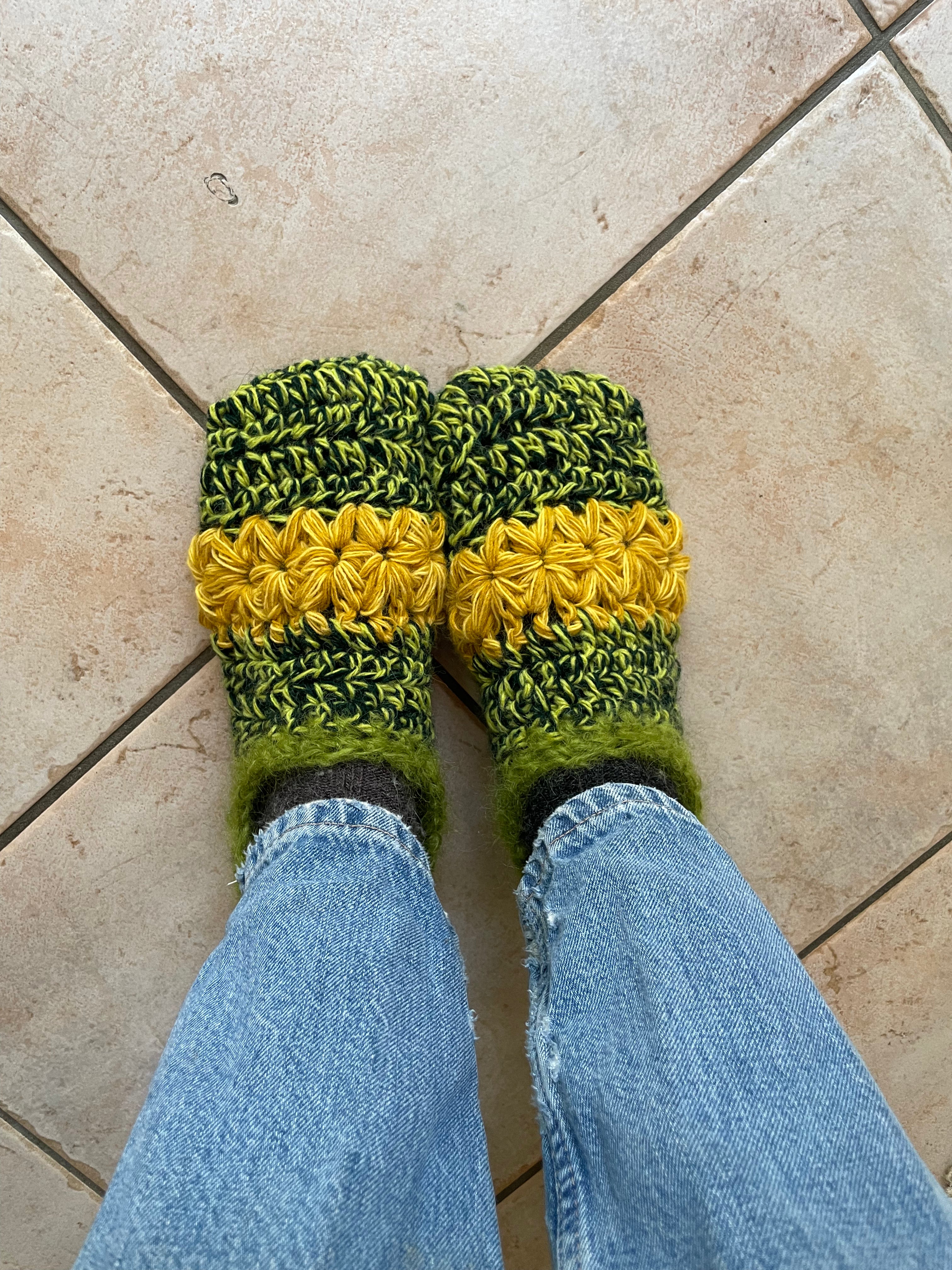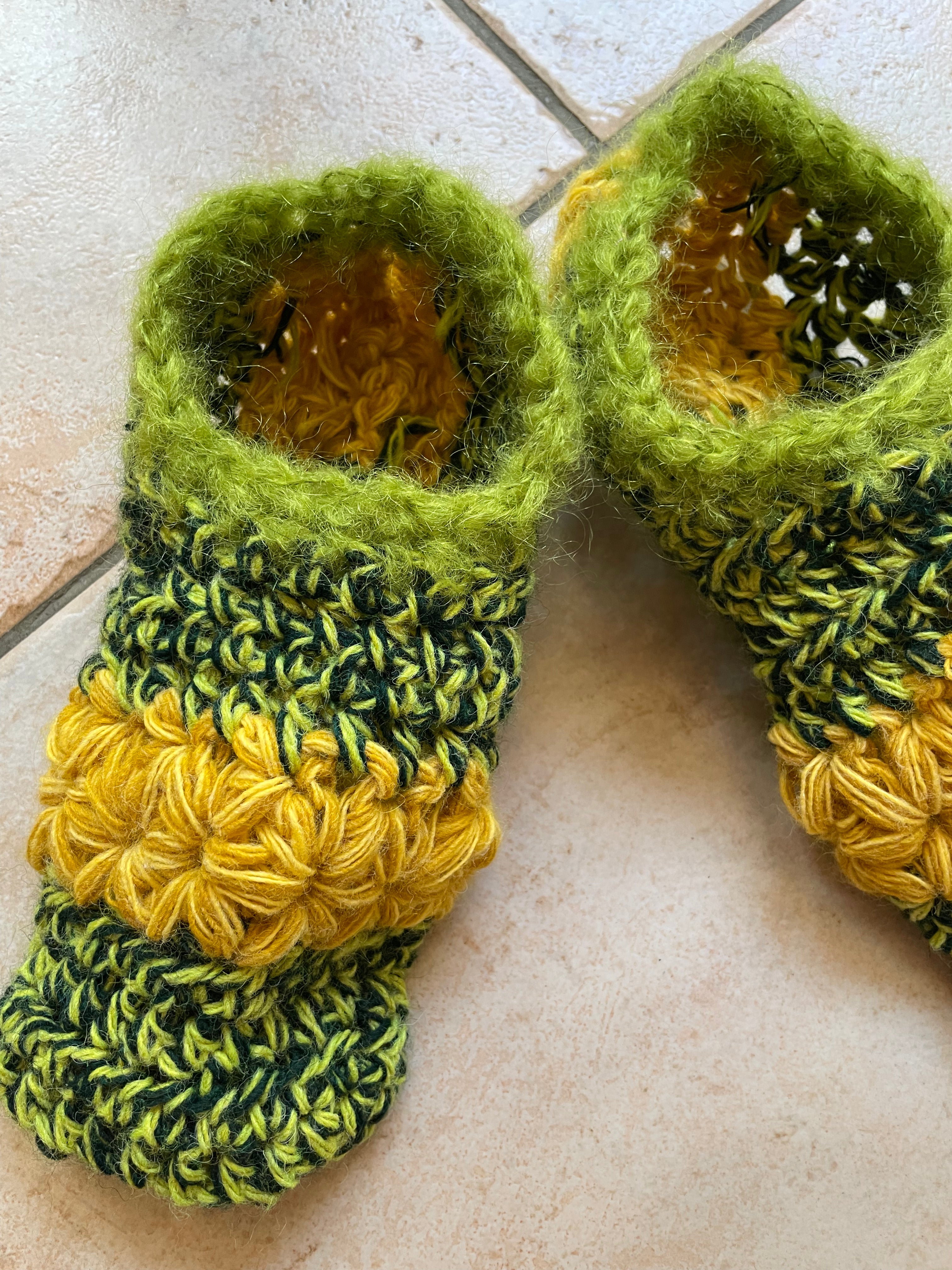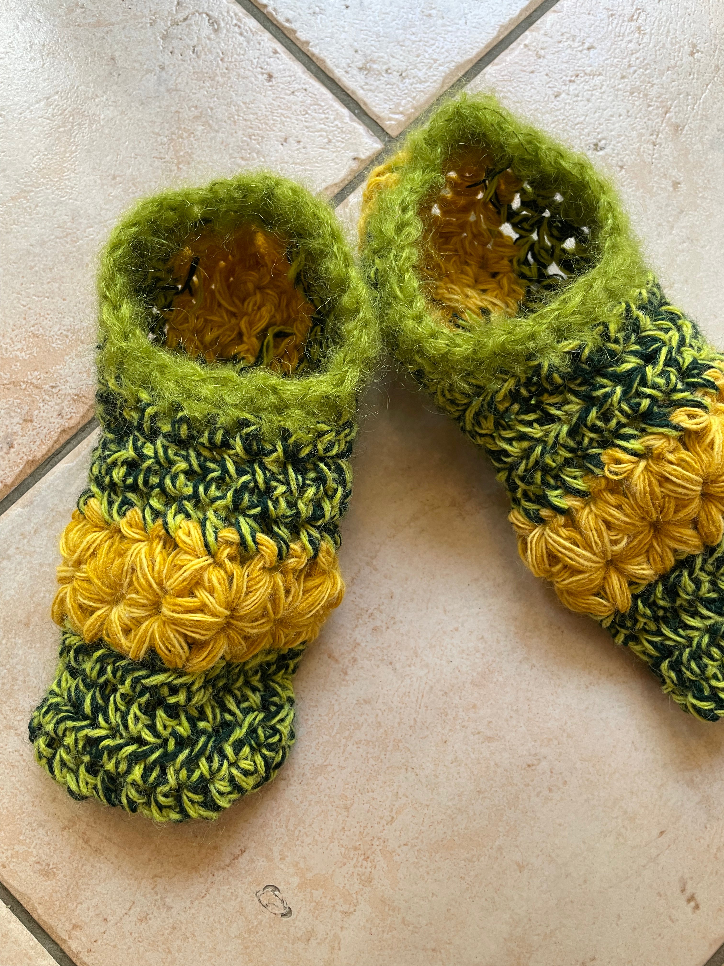 Pantofole in lana alpaca e superkid mohair, realizzate a mano a uncinetto. Morbide, calde e incredibilmente comode per le tue giornate in casa—perché il comfort non deve rinunciare allo stile. Perfette anche per portare da amici: si piegano facilmente in borsa e ti permettono di toglierti le scarpe senza sacrificare un tocco di colore ai tuoi piedi. Indossa la comodità, ovunque tu vada.