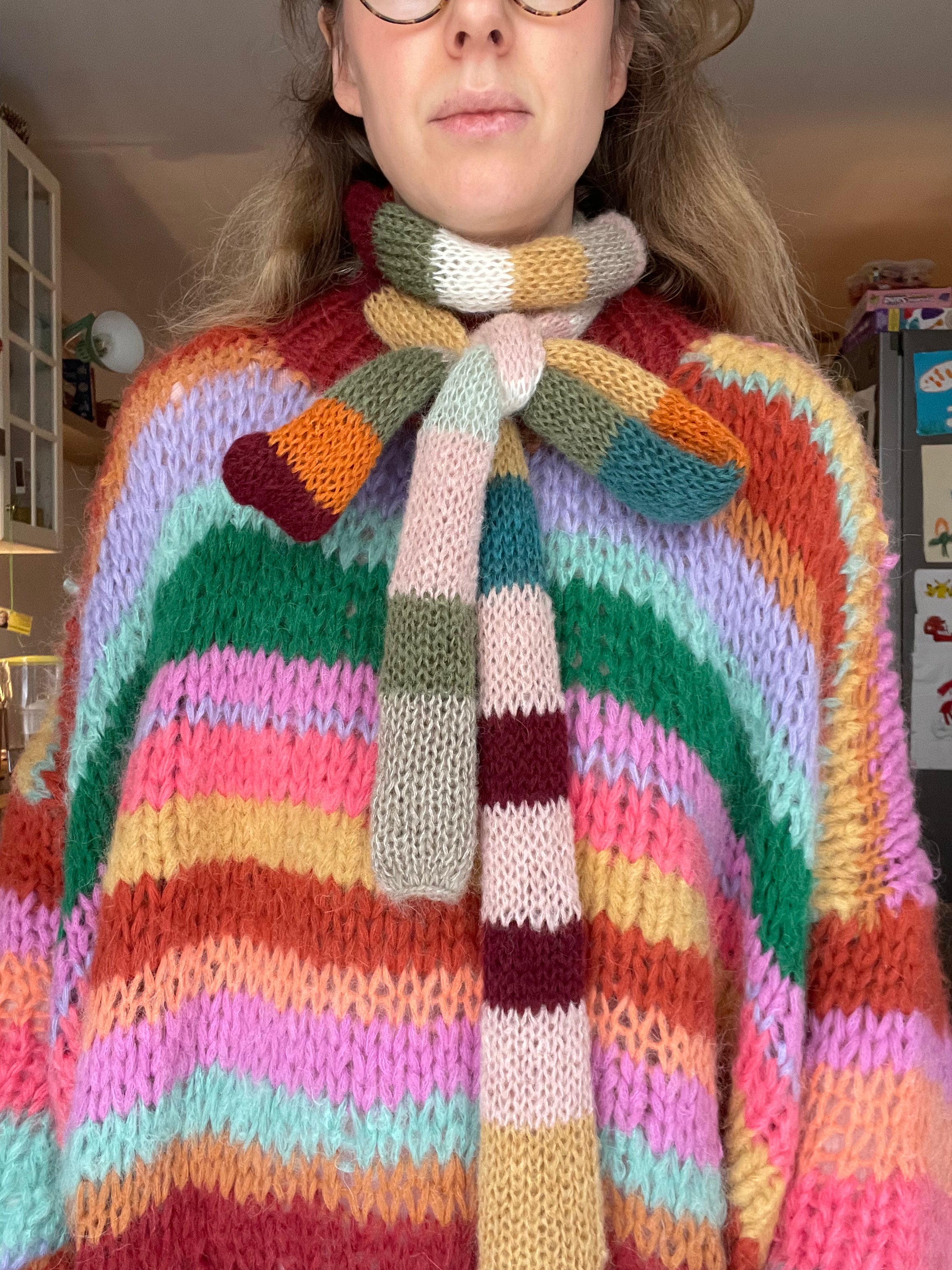 Sciarpina realizzata interamente a mano con filati di Superkid Mohair di diversi colori.