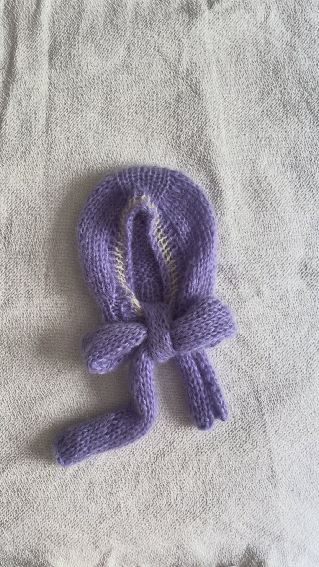 Il cardigan con laccetti: realizzato interamente a mano lavorando insieme sei fili di Superkid Mohair. Purtroppo non è possibile toccare...