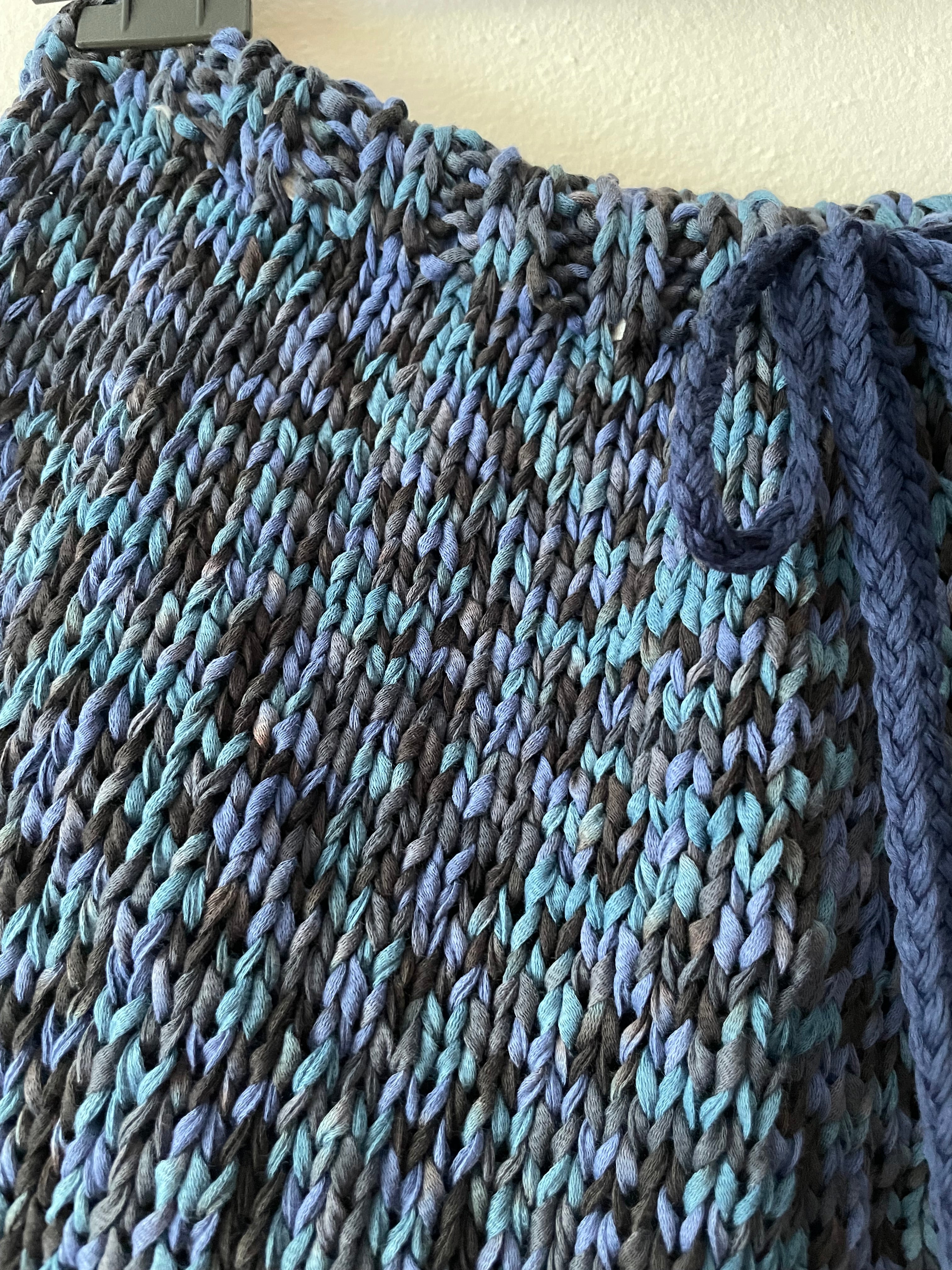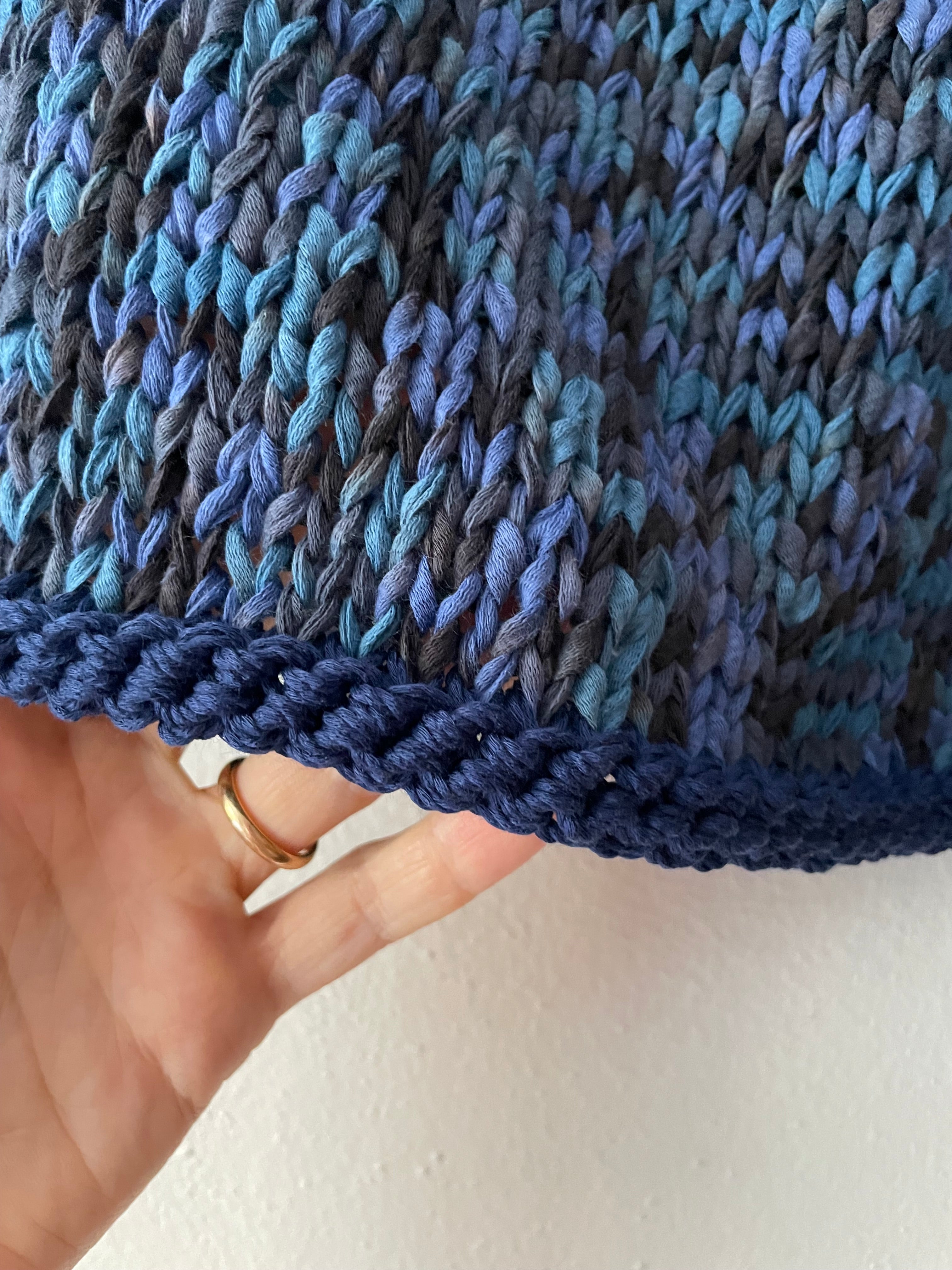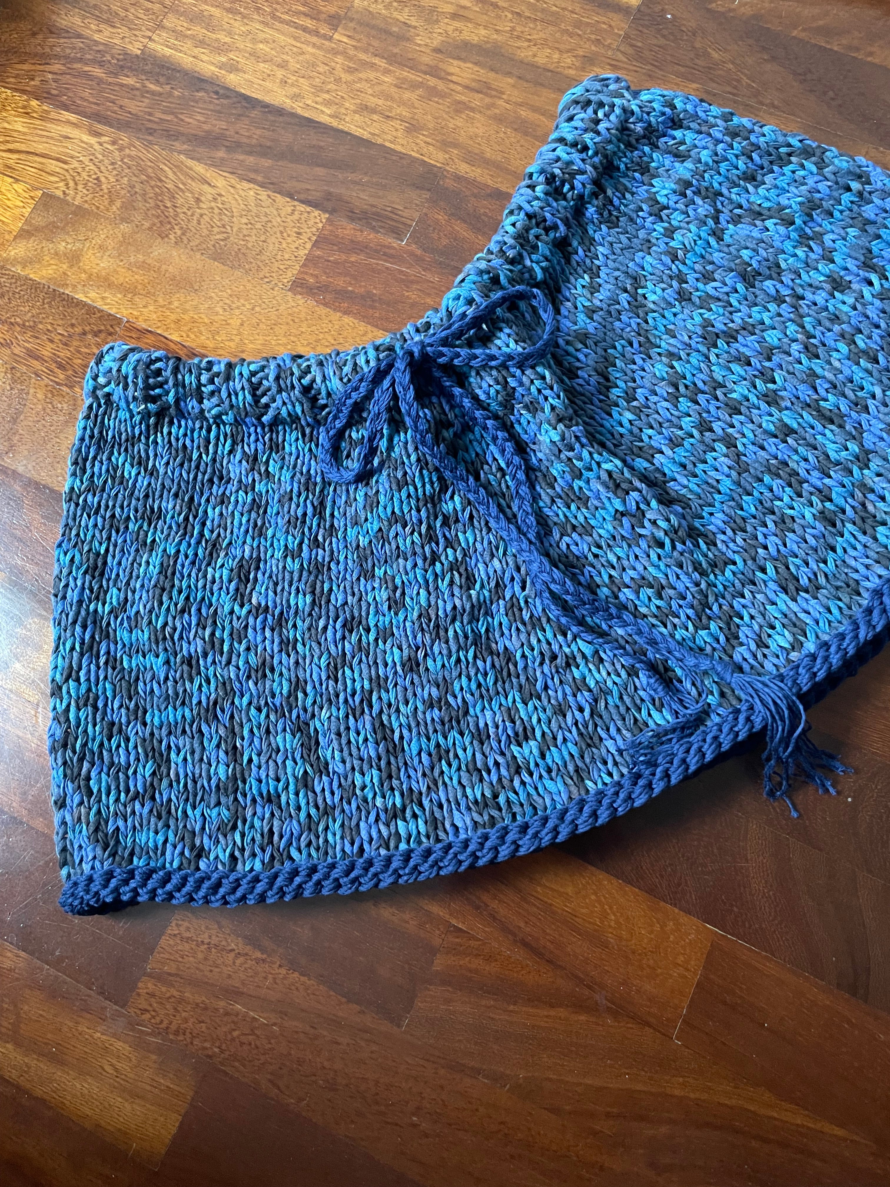 Minigonna realizzata interamente a mano in filato 100% cotone super elastico. Il colore è un bellissimo blu notte sfumato.