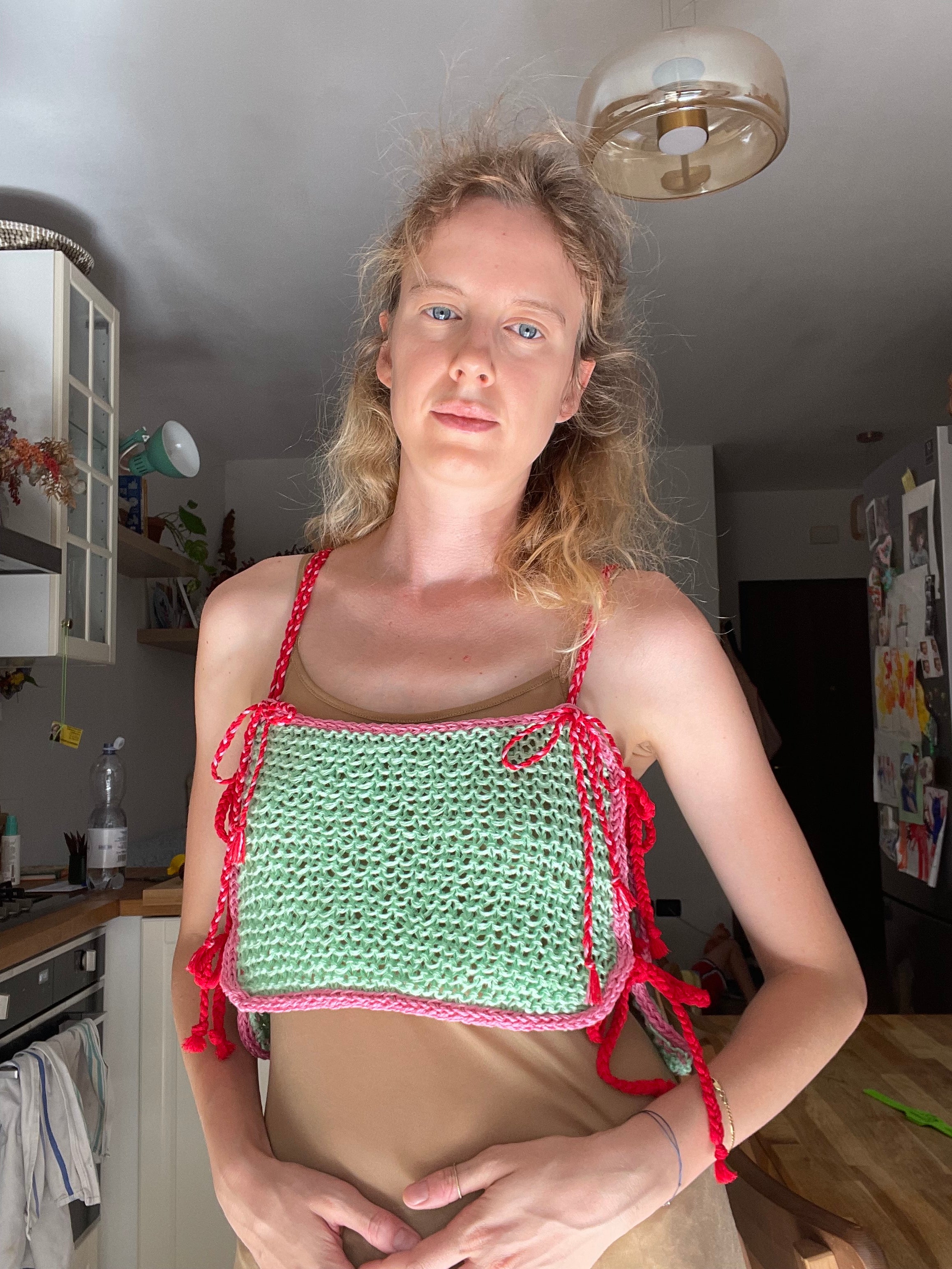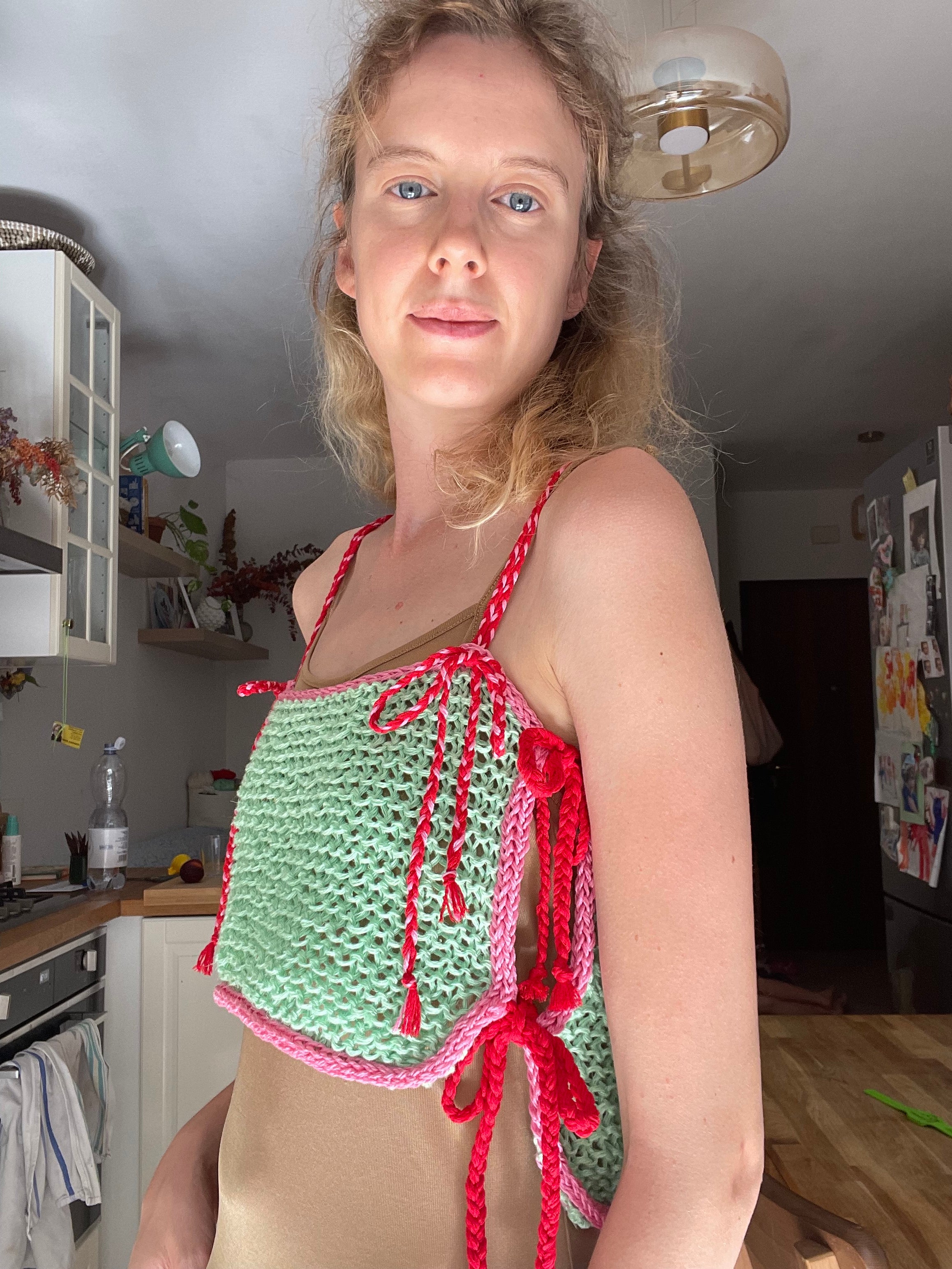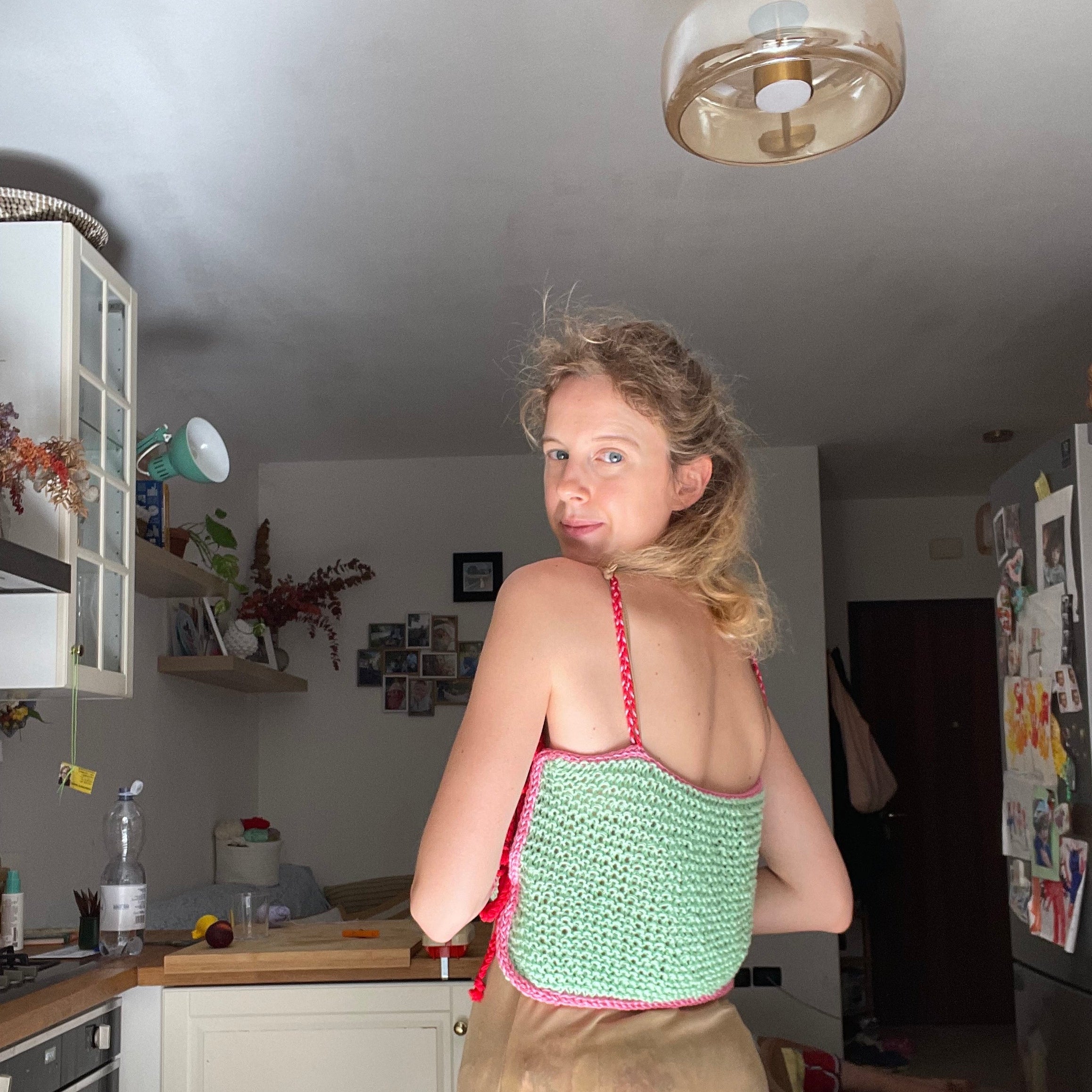 Il gemello del Gilet con Laccetti sui Fianchi, ma in versione estiva: più corto, più fresco ma sempre super romantico ❤️
