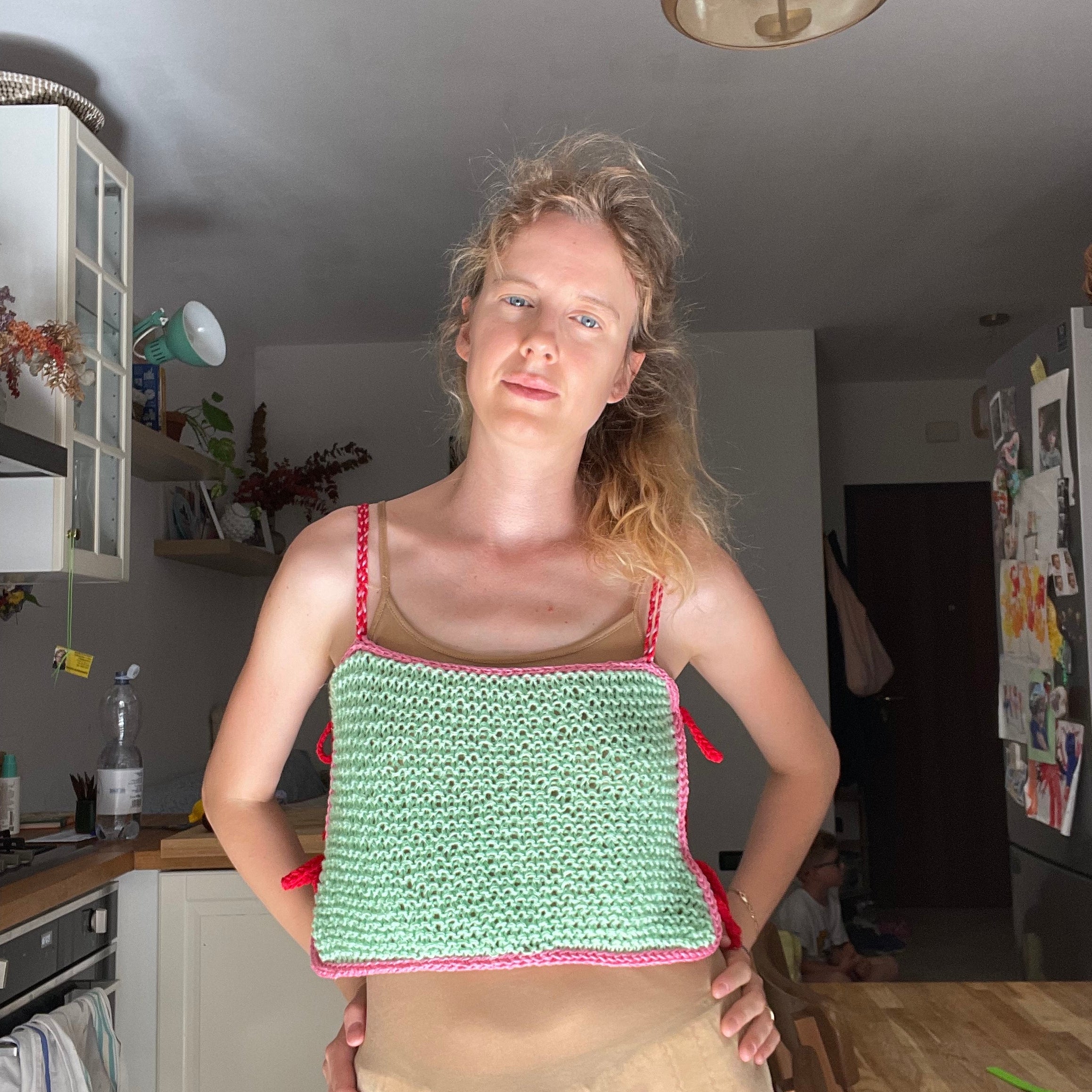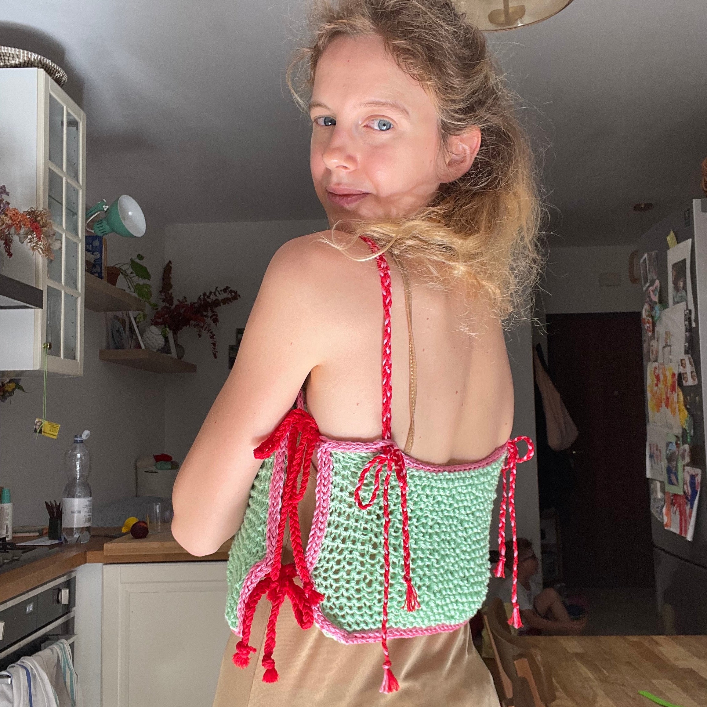 Disponibile un capo in pronta consegna taglia S/M. Misure corpetto in larghezza: parte più ampia - 45cm, parte più stretta - 31 cm.
