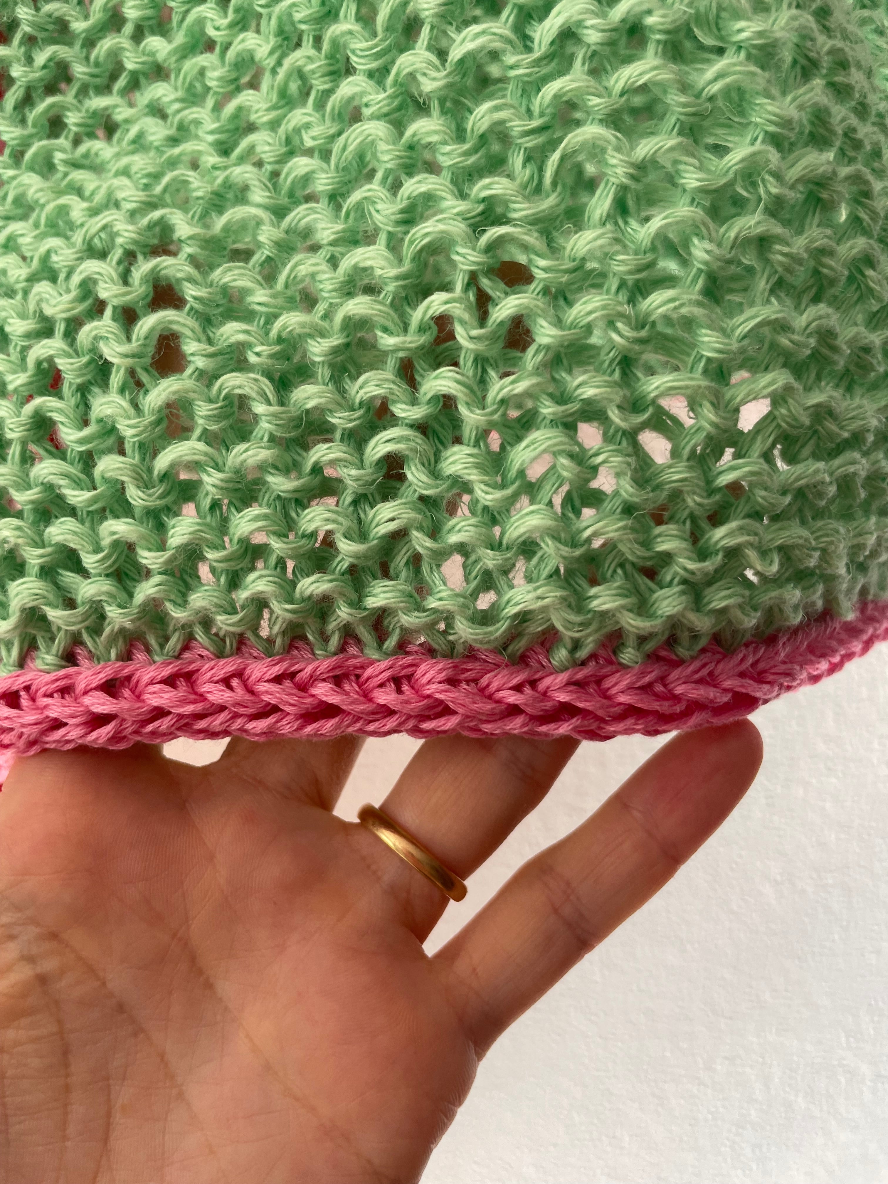 Il corpo è realizzato in un filato bellissimo lino e seta (90%lino 10%seta), mentre le rifiniture in cotone egiziano. Interamente realizzato a mano.
